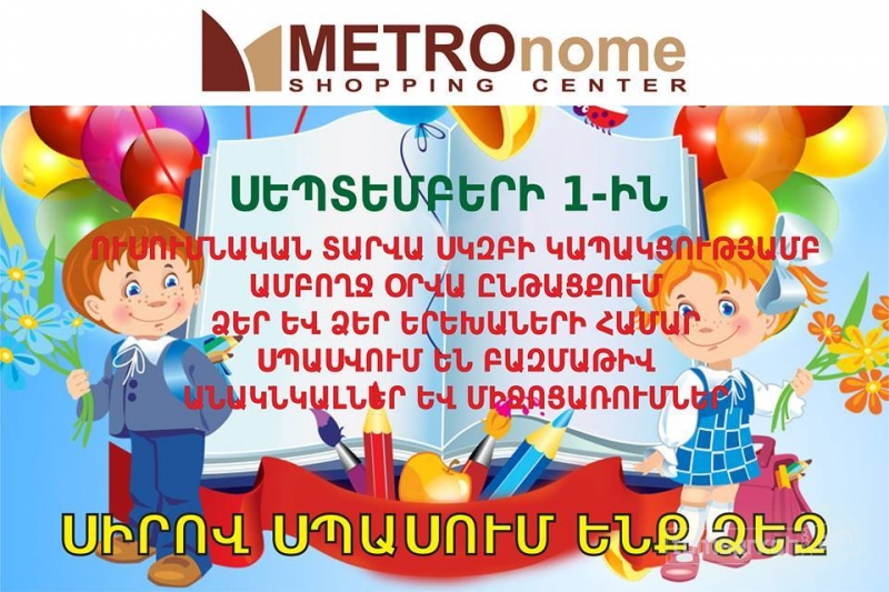 Ուսումնական տարվա սկզբի կապակցությամբ՝ սեպտեմբերի 1-ին ամբողջ օրվա ընթացքում Ձեր և Ձեր երեխաների համար սպասվում են բազմաթիվ անակնկալներ և միջոցառումներ։