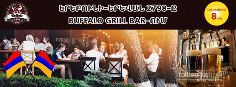 Դիմավորեք «Էրեբունի-Երևան 2798»տոնակատարությունը Buffalo Grill Bar-ի հետ միասին հոկտեմբերի 8-ին ժամը 19:00-ին: