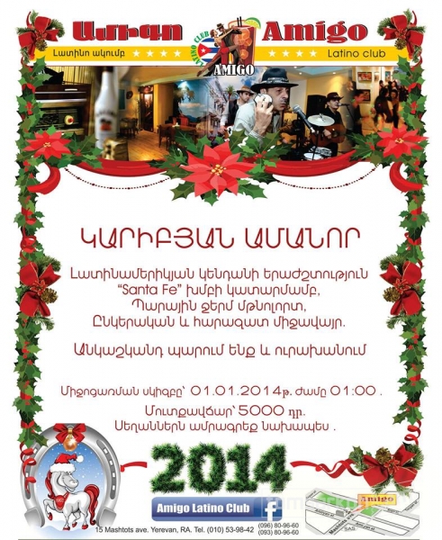 Լատինամերիկյան կենդանի երաժշտություն, պարային ջերմ մթնոլորտ, ընկերական և հարազատ միջավայր: Անկաշկանդ պարում ենք և ուրախանում :