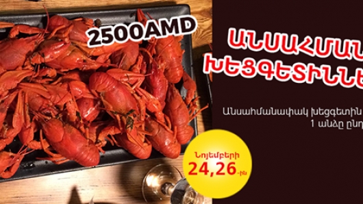 Վայելեք մեր խոշոր և անսահմանափակ քանակով խեցգետինները վճարելով անձը ընդամենը 2500 դրամ :)