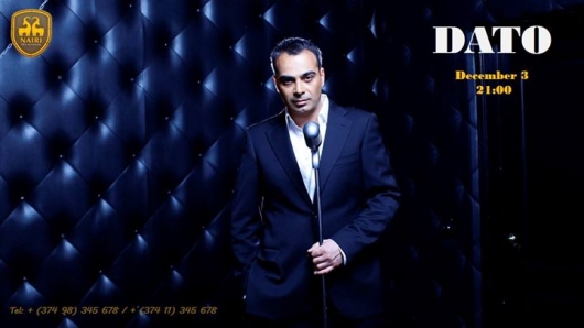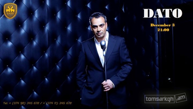 On December 3, 21:00 in the Music Hall of Nairi SPA Resorts the singer Dato will held solo concert.