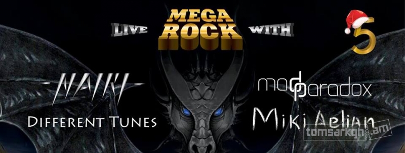 Ողջույն ռոք Հայաստան կրկին ձեզ հետ ենք և այս անգամ արդեն 2 օրով՝ դեկտեմբերի 25-ին և 26-ին ''Ulikhanyan Art Club'' -ում ժամը 20:00 -ին կկայանա հերթական արդեն բոլորիս հայտնի տոնական 5-րդ ''MEGA ROCK '' Ռոք համերգը հետևյալ - Different Tunes, Nairi , Mad Paradox, Miki Aelian ռոք խմբերի մասնակցությամբ։ Ինչպես միշտ որակյալ երաժշտությունն, թեժ Ռոք տրամադրությունն երաշխավորված են։ Մեծ սիրով սպասւմ ենք բոլորիդ։ Դե ինչ ուրախ ենք կրկին ասել ձեզ Welcome & let's Rock toghether))