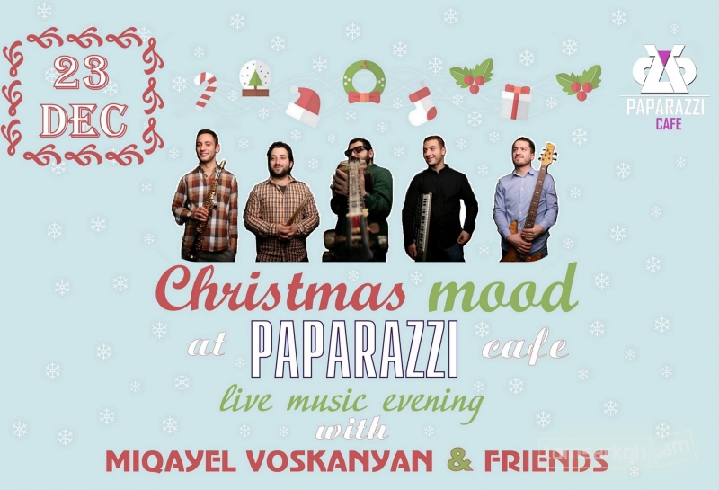 Դեկտեմբերի 23-ին ժամը 20:00-ին PAPARAZZI cafe-ում տեղի կունենա մեր համերգը , որտեղ կհնչեն բոլորիս կողմից սիրված Ամանորյա հայտնի երգերը մեր նոր գործիքավորմամբ: