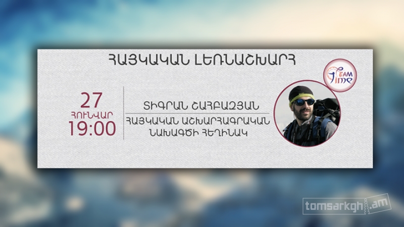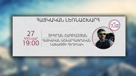 Հունվարի 27-ին ժամը 19:00 Team Time-ը հյուրընկալում է աշխարհագրագետ, Հայկական աշխարհագրական նախագծի ղեկավար, Ալպինիզմի և Լեռնային Տուրիզմի Հայկական Ֆեդերացիայի վարչության անդամ Tigran Shahbazyan-ին։
