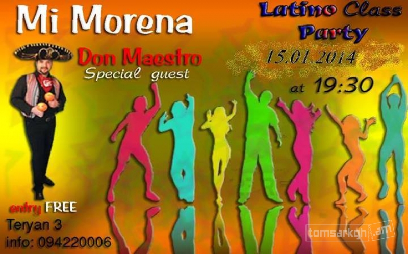 Մեր շատ սիրելի հաճախորդներ այս չորեքշաբթի համեցեք լատինո երեկոյի որի ընթացքում կարող եք սովորել իրական լատինո պարը Դոն Մաեստրոյի հետ միասին ( անվճար): Երեկոյի հատուկ հյուր Դոն Մաեստրոն ցույց կտա իսկական մաստեր կլաս: