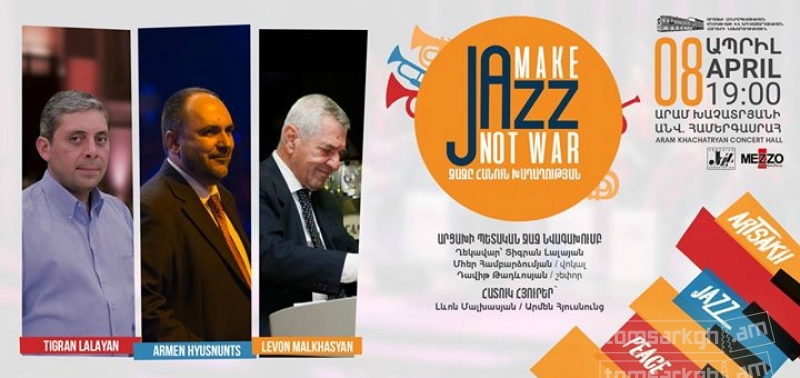 Ջազը հանուն խաղաղության (Make Jazz Not War ) խորագիրը կրող համերգը կկայանա ապրլի 8-ին, ժամը 19:00-ին Ա. Խաչատրյան համերգասրահում:
