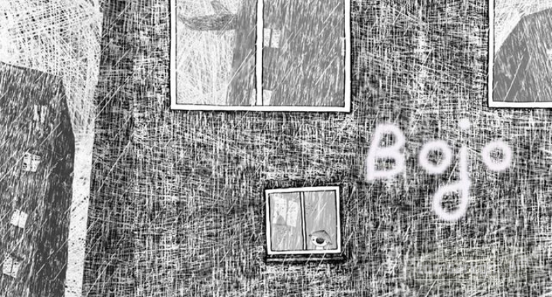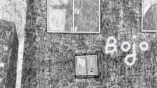 Bojo, a small bear, lives in his house alone never going out. Once the wind blows him out of the window…