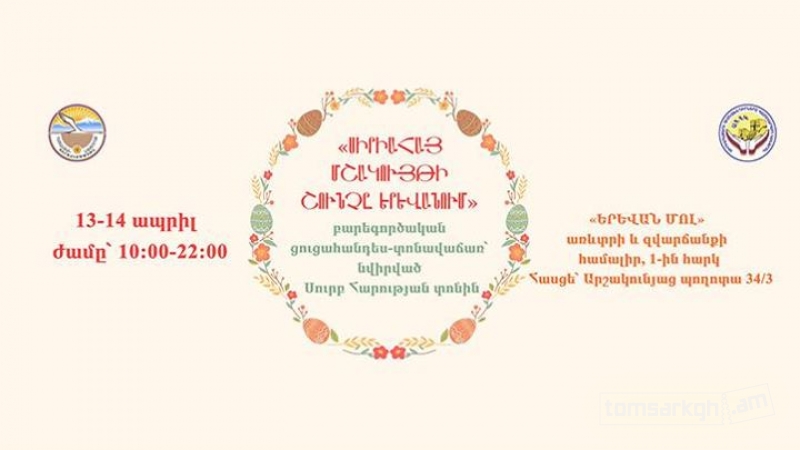 Սիրով հրավիրում ենք Ձեզ ՀՀ սփյուռքի նախարարության և «Սիրիահայերի հիմնախնդիրները համակարգող կենտրոն» ՀԿ-ի նախաձեռնությամբ կազմակերպվող՝ «Սիրիահայ մշակույթի շունչը Երևանում» բարեգործական ցուցահանդես-տոնավաճառին, նվիրված Սուրբ Հարության տոնին: