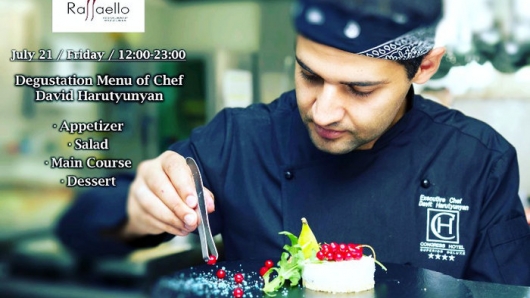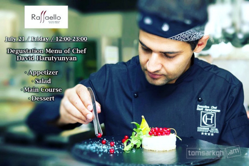 Այս ուրբաթ, Հուլիսի 21-ին, 12:00-ից մինչև 23:00 հրավիրում ենք Raffaello ռեստորան փորձելու և գնահատելու մեր Շեֆ-խոհարար Դավիթ Հարությունյանի կողմից պատրաստված օրիգինալ ուտեստները։