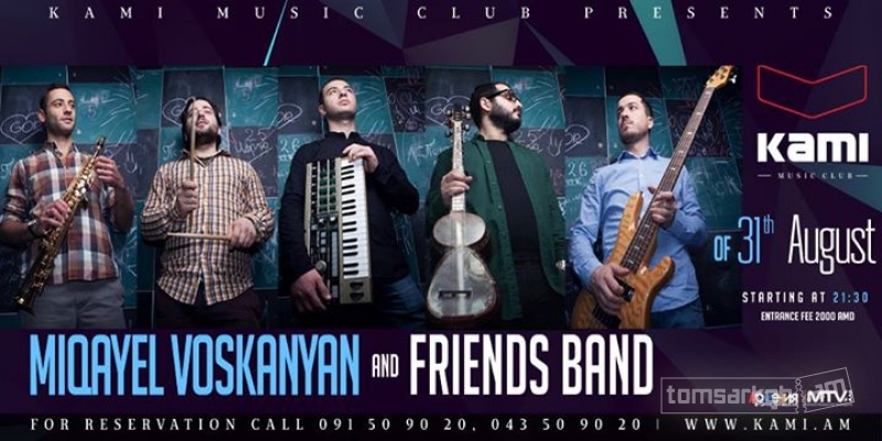 Այսօր երեկոյան KAMI Music Club-ում երաժշտությունն ապահովելու է Miqayel Voskanyan & Friends բենդը: Վայելե`ք ֆոլկ ֆյուժն և ֆոլկ ջազ երաժշտությունը հին հայկական թառի գործիքավորմամբ: