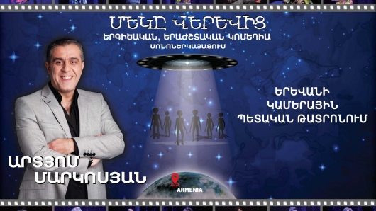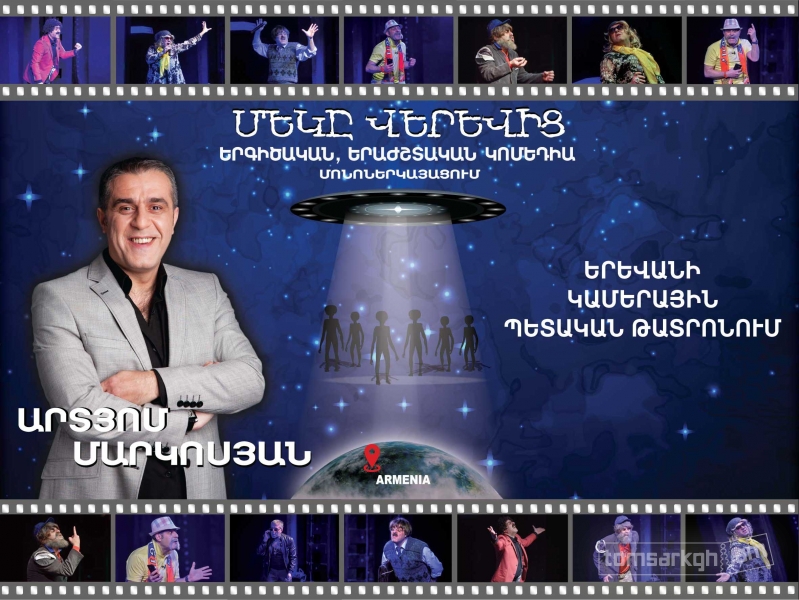 Արտյոմ Մարկոսյանի «Մեկը վերեւից» երգիծական, երաժշտական կոմեդիան դիտեք Երեւանի պետական կամերային թատրոնում: Բոլորովին նոր ֆորմատի մոնոներկայացում՝ մի շարք կերպարներով եւ հետաքրքիր զարգացումներով: