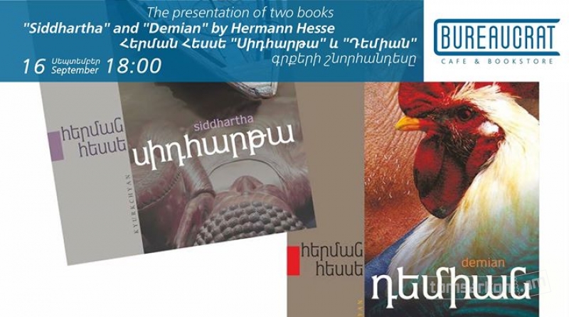 Սեպտեմբերի 16-ին՝ ժամը 18։00, Բյուրոկրատ գրախանութում տեղի կունենա Հերման Հեսսեի "Սիդհարթա" և "Դեմիան" գրքերի հայերեն թարգմանությունների շնորհանդեսը։