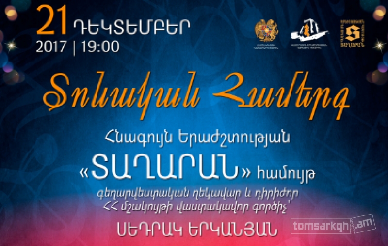 Դեկտեմբերի 21-ին /19:00/ սիրով հրավիրում ենք Կոմիտասի անվան կամերային երաժշտության տուն՝ Հնագույն երաժշտության <<Տաղարան>>համույթի համերգին:
