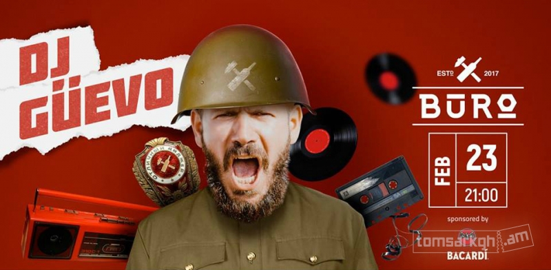 Տագնաա՜պ. Փետրվարի 23-ին Բյուրոյի N7/1 զորամասում երաժշտական միքսերի պատվավոր գեներալ մայոր Güevo Markaryan-ը կազմակերպում է հատուկ զորահավաք՝ Կարմիր Բանակի օրվա կապակցությամբ։