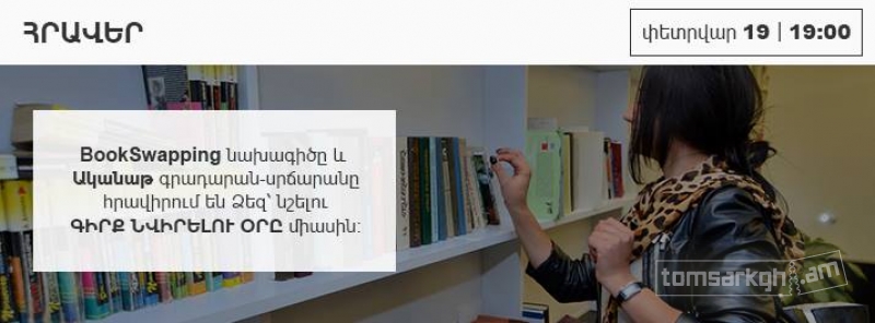 BookSwapping-ը և Ականաթը հրավիրում են Ձեզ նշելու գիրք նվիրելու օրը միասին: