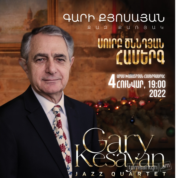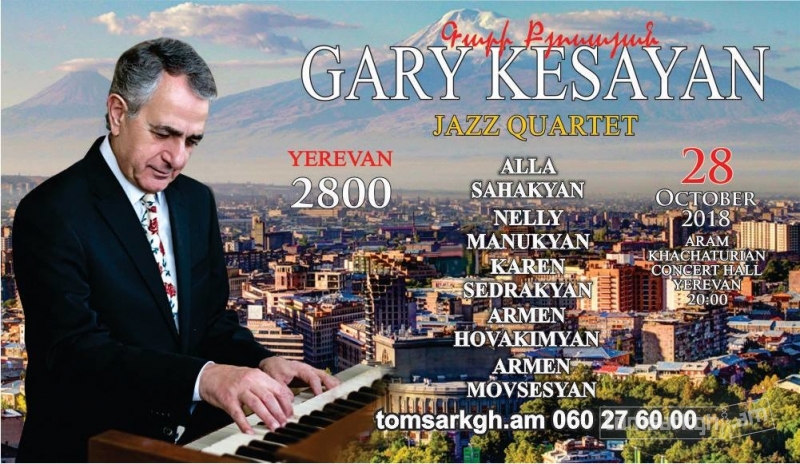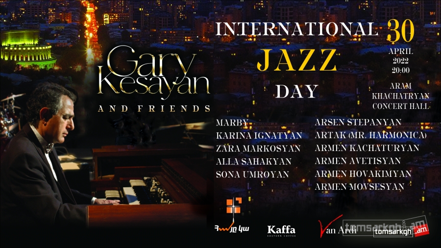 Գարի Քյոսայանը և ընկերները Ջազի միջազգային օրը հիանալի տոն են պարգևելու ։ Ապրիլի 30 ին ժամը 20:00 ին `Ջազի միջազգային օրվան ընդառաջ,Արամ Խաչատրյան ֆիլհարմոնիկ համերգասրահում տեղի է ունենալու՝ Գարի Քյոսայանը և ընկերները խորագրով ջազ համերգ ։ ։Ծրագրում հնչելու են պրեմիերաներ , հանրահայտ ստանդարտներ Գարի Քյոսայան ջազ քառյակի և տաղանդավոր արտիստների մասնակցությամբ` Մարբի ,Զառա Մարկոսյան,Սոնա Ումրոյան ,Կարինա Իգնատյան ,Ալլա Սահակյան ,Արտակ (Միստր հարմոնիկա ),Արմեն Ավետիսյան և այլն ։
