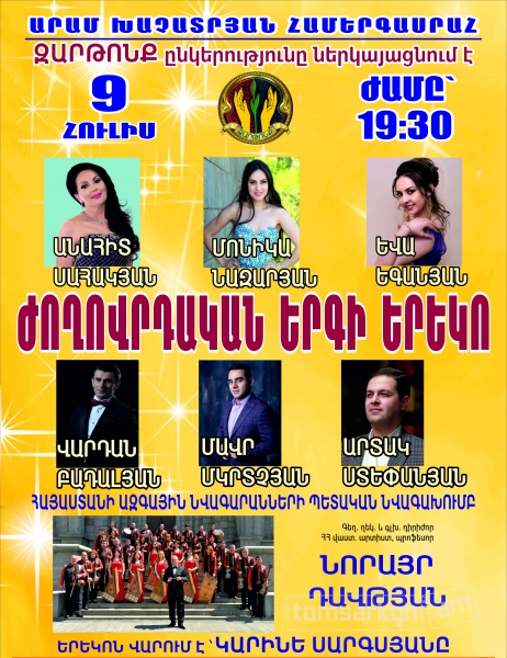 Հուլիսի 9-ին Արամ Խաչատրյան համերգասրահում