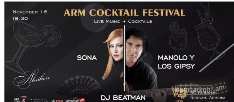 II prossimo 16 novembre, presso la Dvin Misic Hall, avra` luogo I Arm Cocktail Festival, il primo festival in assoluto del mondo delle bevande alcoliche armeno . Durante la serata si esibira` I’ospite d’onore , il Sona & Manolo Y los Gipsy