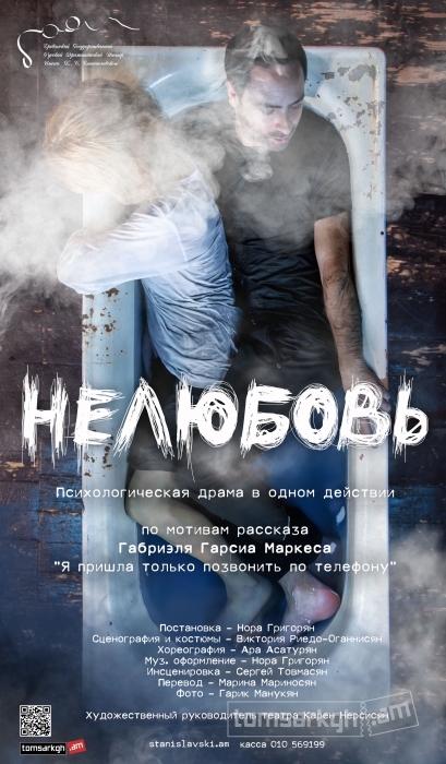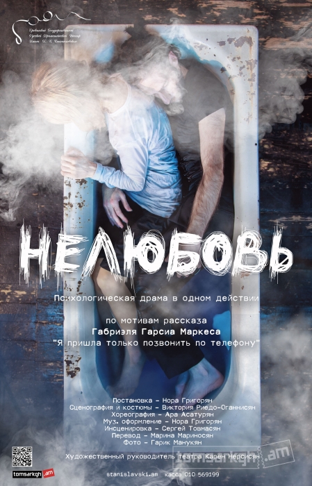 Спектакль “Нелюбовь” поставлен по мотивам рассказа Габриэля Гарсия Маркеса “Я пришла только позвонить по телефону”. Это пронзительная история о разбитых надеждах, напрасных иллюзиях и желаниях, душераздирающих людских судьбах. Про всепоглощающую нелюбовь. И даже если в этой страшной среде возникает надежда на рождение новой, может быть странной, но любви, эту надежду и любовь убивают жестокостью и ненавистью.