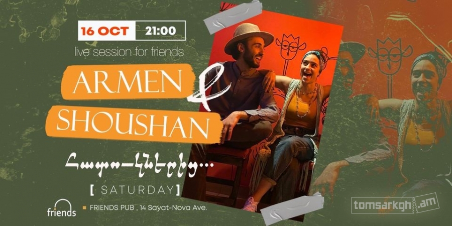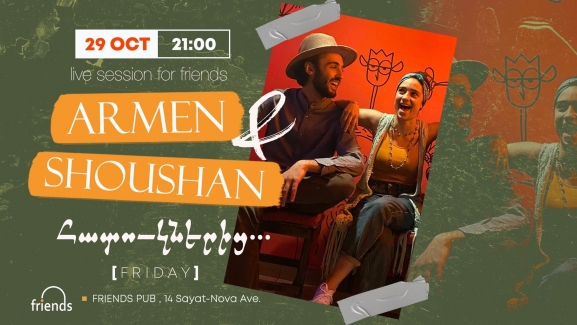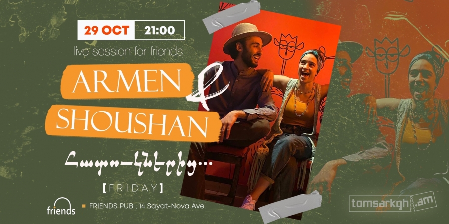 Armen & Shoushan are bringing a very special live set to Friends Pub. Songs of life and love during hard times are ringing out stronger to find their place in the hearts and minds of the listener.