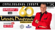 Լեգենդար արտիստը 60 տարեկան է: Հոբելյանական մեծ, ազգային համերգ `մարզահամերգային համալիրում : Անակնկալ դուետներ ,սիրված կատարումներ հայտնի երգիչների մասնակցությամբ: Շքեղ երեկո ,հայրենասիրական ոգի` սեպտեմբերի 17-ին ժամը19:00 -ին: