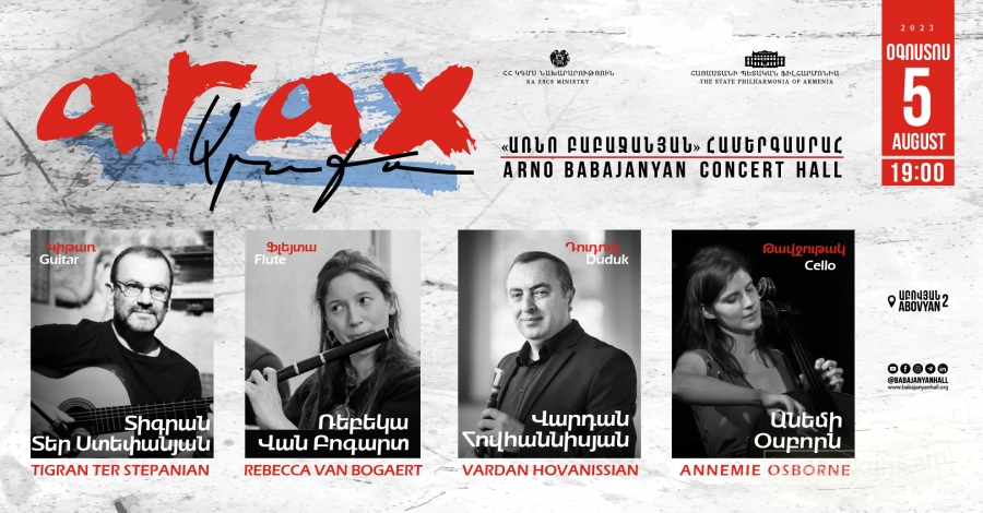 Ծրագրում` հայկական ավանդական մեղեդիների հայտնի արաքսյան մշակումները` կիթառի, դուդուկի, ֆլեյտայի և թավջութակի համար։