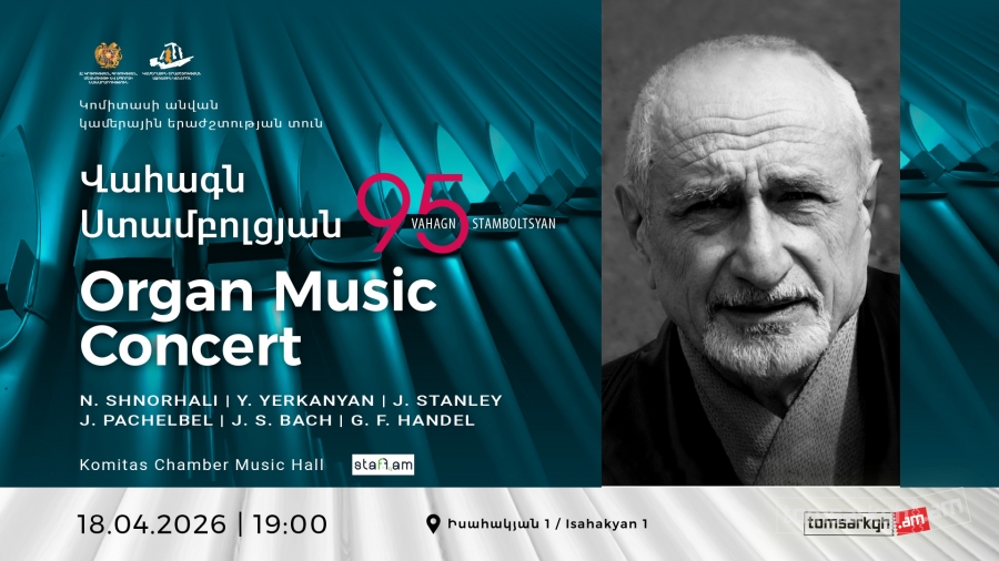 On April 18, at 7:00 PM, an organ music concert dedicated to the 95th anniversary of the great Armenian organist and founder of the Armenian organ school Vahagn Stamboltsyan, will take place at the Komitas Chamber Music Hall.
