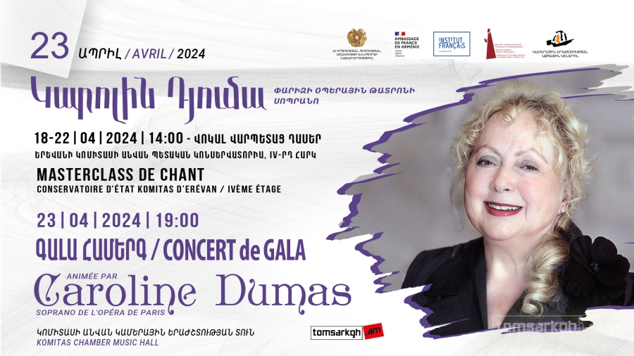 *Ապրիլի 18-22-ը Երևանի Կոմիտասի անվան պետական կոնսերվատորիայում Կարոլին Դյուման կանցկացնի վոկալ-վարպետության դասեր