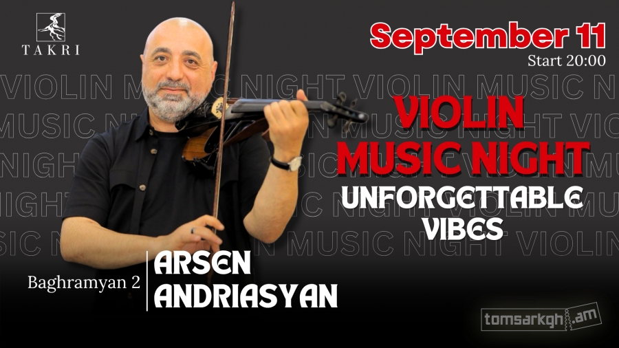 Հայաստանի լավագույն ջութակահարներից մեկը` Արսեն Անդրիասյանը, ողջ երեկոյի ընթացքում, կներկայացնի բոլորիդ կողմից ամենասիրված ու ճանաչված ստեղծագործությունները` երևանյան ֆոլկ, հայկական կոմպոզիտորական ստեղծագործություններ, յուրահատուկ մշակմամբ էստրադային և դասական ստեղծագործություններ, համշխարհային ամենաճանաչված գործերը...Մի խոսքով` լավագույնը` լիրիկականից մինչև անդադար պարի հրավիրող։ Բարձր տրամադրությունն ու հրաշալի մթնոլորտը երաշխավորված են։