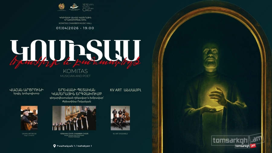Ապրիլի 1-ին` ժամը 19:00-ին, Կոմիտասի անվան կամերային երաժշտության տանը տեղի կունենա «Կոմիտաս՝ երաժիշտ և բանաստեղծ»