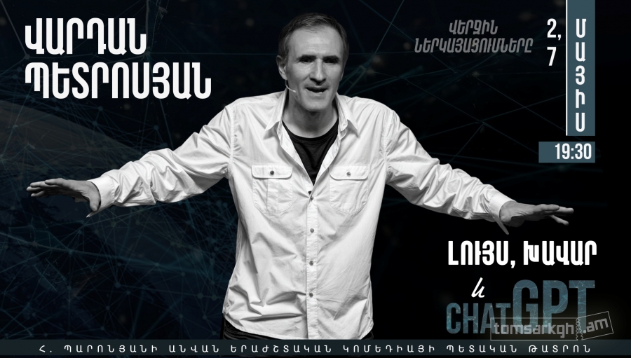 Սա երգիծական մենաներկայացում է մեր մասին, մեր կյանքի հակասությունների՝ հոգևոր-աշխարհիկ, իշխանություն- ընդդիմություն, եկեղեցի- պետություն-ժողովուրդ, որում ապրում ենք, կռվում, պայքարում, արարում՝ այսօրվա նոր հերոսի՝ արհեստական բանականության Chat GPT-ի մասնակցությամբ: