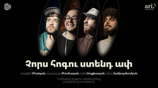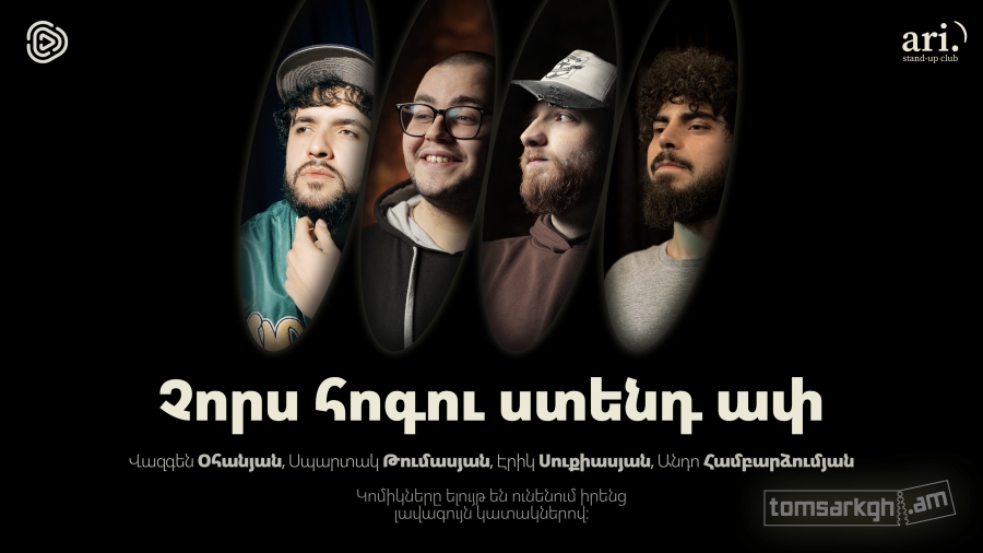 Վազգեն Օհանյանը, Սպարտակ Թումասյանը, Էրիկ Սուքիասյանը և Անդո Համբարձումյանը ելույթ են ունենում իրենց լավագույն կատակներով։