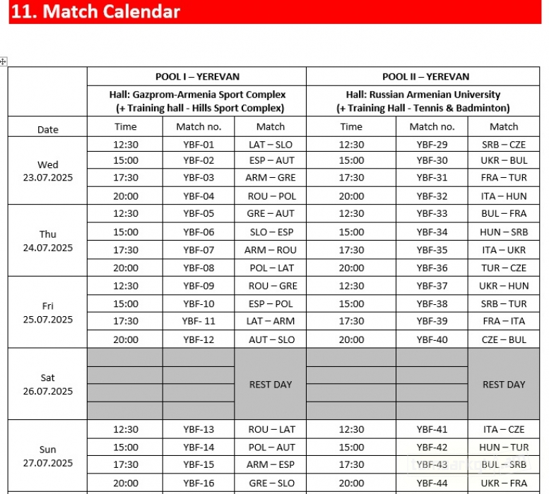 23.07.2025 Hall: Gazprom-Armenia Sport Complex