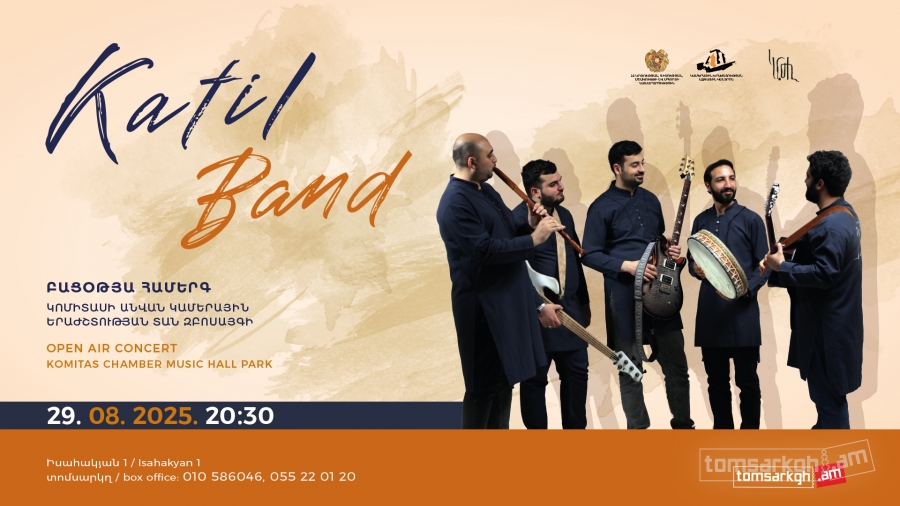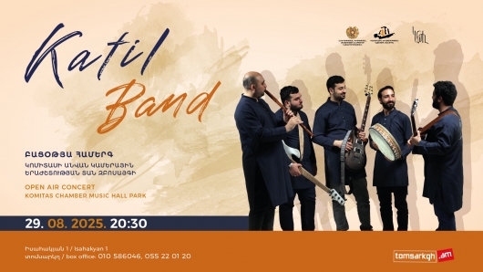 Կամերային երաժշտության ազգային կենտրոնը օգոստոսի 29-ին՝ ժամը 20:30-ին, Կոմիտասի անվան կամերային երաժշտության տան զբոսայգու բացօթյա բեմում հրավիրում է ազգային երաժշտությամբ պարուրված անմոռանալի երաժշտական երեկոյի՝ վայելելու հայկական սիրված երգերը «Կաթիլ» բենդի յուրօրինակ մատուցմամբ։