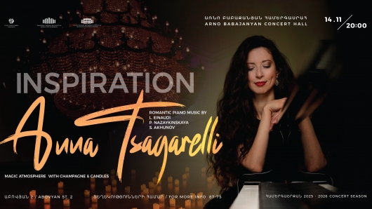 Կատարող՝ Աննա Ցագարելլի, դաշնակահար, դասական երաժշտության նորարարական նախագծերի հեղինակ, Մոսկվայի Բոլշոյ թատրոնի և Հայաստանի պետական Ֆիլհարմոնիայի բազմակի հյուր: