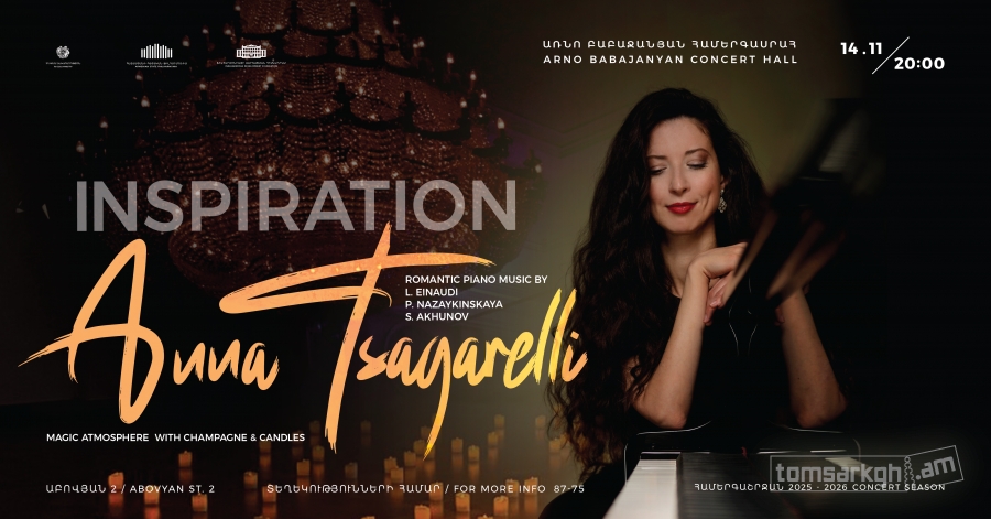 Performer: Anna Tsagarelli, Russian pianist, known for her innovative classical music projects and regular appearances at the Moscow Bolshoi Theatre and the State Philharmonia of Armenia.