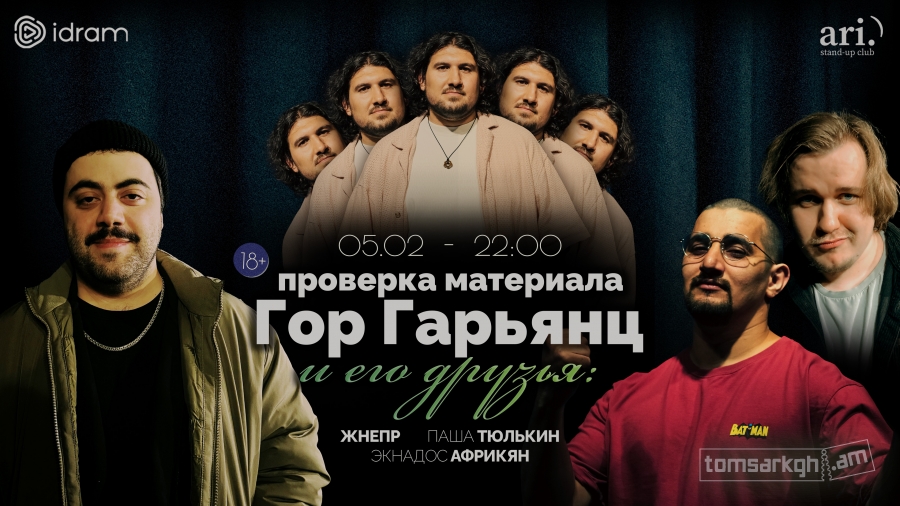 Паша Тюлькин, Жнепр и Экнадос Африкян выступают со своими новыми шутками. ведущий: Гор Гарьянц. Если вы опоздали на 20 минут и более вам придется сесть на оставшиеся свободные места, не зависимо от купленного вами билета.