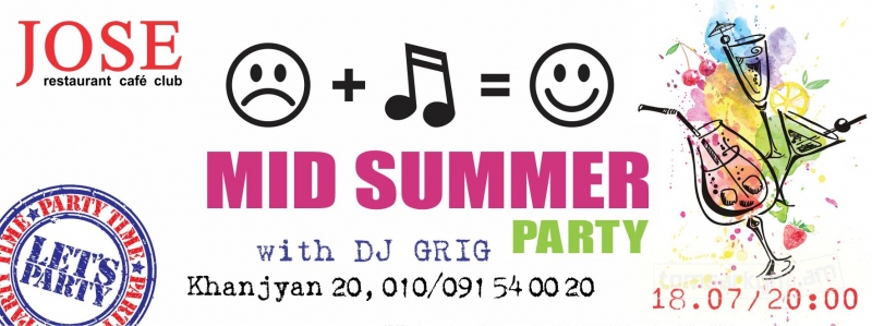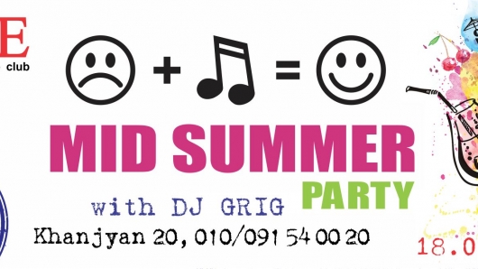 Mid summer party DJ Grig-ի հետ: Անվճար Իջևան գինի մինչ 21:00: Աղջիկների մուտքն ազատ է: