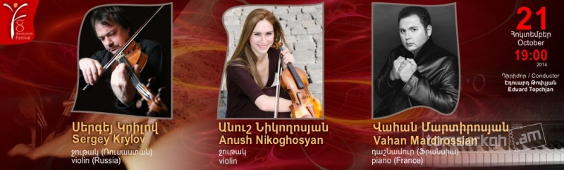 Հոկտեմբերի 21-ին՝ ժամը 19-ին, նախագահի տիկին Ռիտա Սարգսյանի բարձր հովանու ներքո Երևանյան 8-րդ միջազգային երաժշտական փառատոնի շրջանակներում Հայաստանի պետական Ֆիլհարմոնիկ նվագախմբի հետ ելույթ կունենան հայտնի ջութակահար Սերգեյ Կրիլովը և դաշնակահար Վահան Մարտիրոսյանը: Կհնչեն Բախի, Մենդելսոնի և Չայկովսկու ստեղծագործություններից: