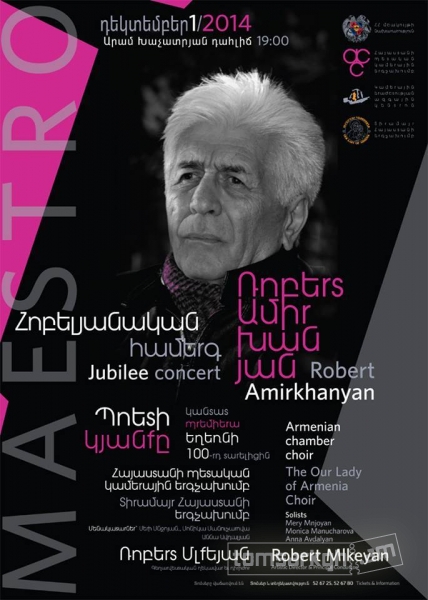 Կամերային երաժշտության ազգային կենտրոնի նախաձեռնությամբ 2014 թ. դեկտեմբերի 1-ին` ժամը 19:00-ին, «Արամ Խաչատրյան» համերգասրահում տեղի կունենա ՀՀ ժողովրդական արտիստ, Պետական մրցանակի դափնեկիր, կոմպոզիտոր Ռոբերտ Ամիրխանյանի ծննդյան 75-ամյակին նվիրված հոբելյանական երեկո: